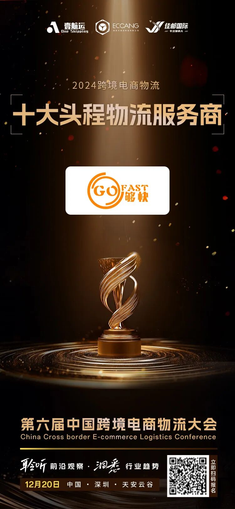 2024年12月20日,一年一度的中国跨境电商物流行业盛典--【2024第六届中国跨境电商物流大会】即将在深圳坂田天安云谷盛大开幕! 大会以“聆听前沿观察、洞悉行业趋势”为主题,届时现场将聚集深耕跨境电商领域的知名分析咨询机构沙利文公司、海运巨头马士基、空运领军企业汉莎航空货运、快船黑马合德海运、以及纵腾、万邑通、递四方、运去哪、UniUni等众多行业头部及新锐企业。 今年大会将由20+位行业重磅嘉宾领衔,其中够快GO FAST 陈曦将会为大家带《平台兴起及规则巨变下,跨境电商物流企业的应对之道》的专题分享。 同时大会将颁发中国跨境电商物流行业年度大奖。其中有深耕行业20余年的物流领军企业、行业新锐、各细分赛道创新企业,也有全国先进企业、上市公司等。评选委员会基于企业的实力规模、美誉度及行业贡献等多个维度,从众多优秀入围企业中遴选。 够快GO FAST 凭借卓越的服务品质、高效的物流解决方案以及深厚的行业积淀,荣获中国跨境电商物流“十大头程物流服务商”。 衷心感谢广大朋友们对于够快GO FAST的支持,这份厚爱会一直鞭策我们不断进步和强大。 「Major Snow」 { 关于 GO FAST } 够快GO FAST2012年创立于美国达拉斯,现有旧金山、广州、达拉斯、深圳、南京等16家分支机构及操作中心,拥有全资美国清关行(GO FAST CUSTOMS BROKERAGE INC.);海外仓总面积12万平方米;业务覆盖北美、南美、及中亚等国家。 GO FAST以“时效够快、清关够稳、服务够好”为宗旨,提供跨境电商物流、空海运门到门、海外仓储、清关派送(美国、南美、中亚)等服务,为跨境电商平台、跨境电商、外贸企业、物流同行提供标准化和定制化的供应链解决方案。是TEMU、TIKTOK、阿里等平台的多渠道物流服务商。GO FAST凭借创新精神和开拓能力,率先为跨境电商平台成功打通了多个电商清关新口岸,显著提升物流履约速度。 GO FAST 自主研发关务系统,自动快速处理清关数据,实现关务合规数字化。自主研发物流信息系统,实现了跨境物流全流程的智能化管理。 GO FAST拥有“白云机场广州够快货站”“南航物流城市货站”资质,取得”国际快递业务经营许可证”,获得高新技术企业认证。 历年来荣获“FBA物流优秀品牌企业”“跨境物流之星”“跨境物流卓越头程”“全国跨境物流50强”“大湾区十佳跨境服务商”“FBA物流风云企业”等荣誉。多次作为优秀案例,刊登于行业权威刊物,缔造了GO FAST的品牌知名度和美誉度。 ▲GO FAST海外仓实拍图 GO FAST主营业务 ●空海运门到门(美国、加拿大、墨西哥、澳洲、中亚) ●海运T86小包 ●清关派送(美国、南美、中亚) ●美国保税仓、一件代发、退货仓 ●美国转南美、加拿大