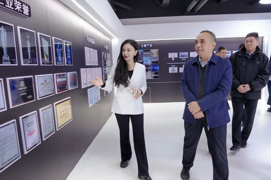 仪式开始前,与会人员参观了跨境1号展厅和工作室,陈曦就当前跨境电商供应链发展态势、园区功能布局、公司发展及工作室宗旨制度、组织结构进行详细讲解。